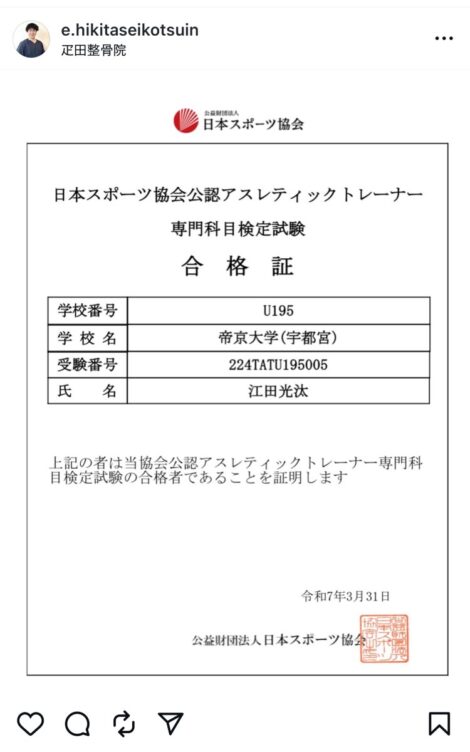 改めて、この度アスレティックトレーナー(AT)の資格を取得しました!