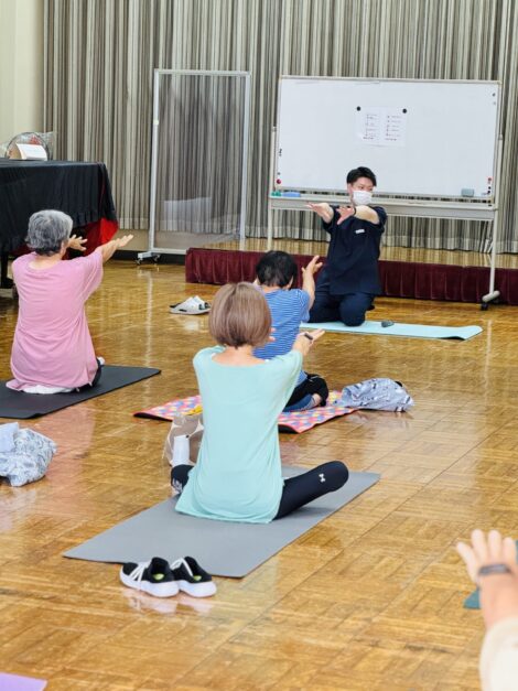 その後は、姿勢を整えるための運動やストレッチを一緒に行い、