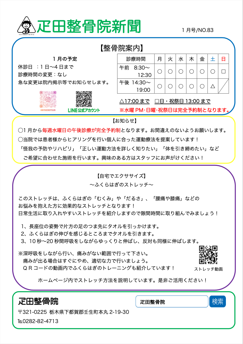 1月から毎週水曜日(午後)が完全予約制となります。
