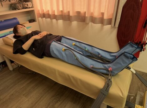 空気圧を使って足を優しく圧迫し、血流やリンパの流れを促すものです。